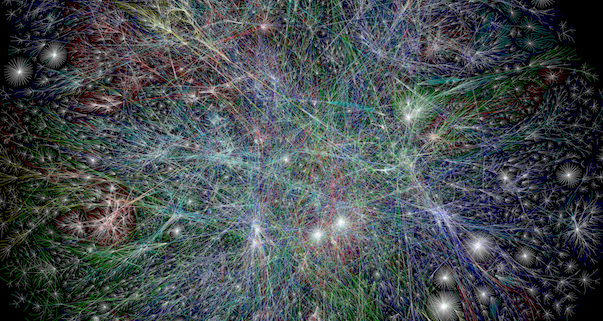 (Image of the internet courtesy of Opte.org–https://www.opte.org/the-internet/. All modifications by Social Robot Futures.)